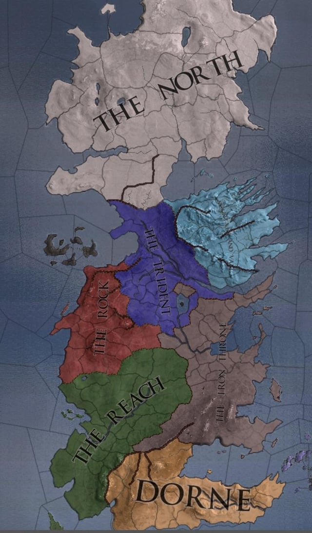The specific image accompanying the post above appears to be a map created by a Crusader Kings II player, as part of a series of modifications designed to make the original game resemble the world created by George R. R.  R. Martin.
