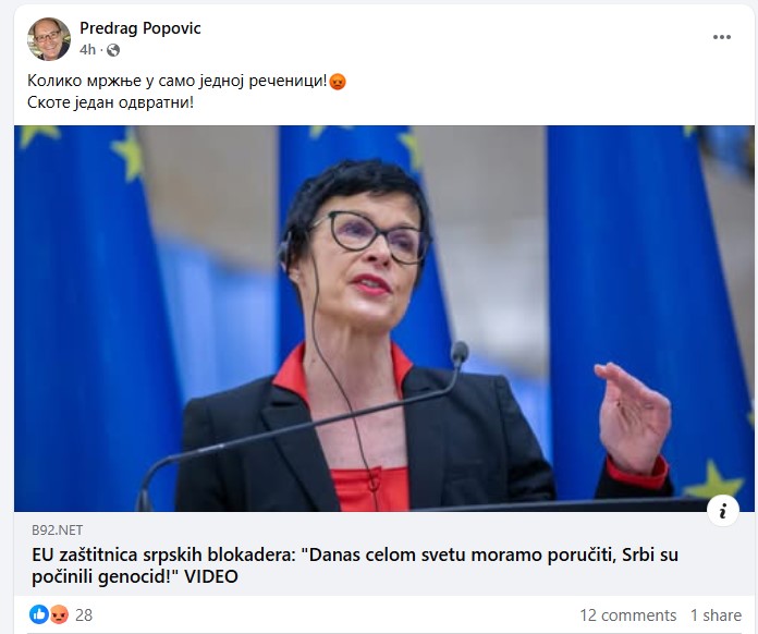 EU protector of Serbian blockers: Today we must tell the whole world, Serbs committed genocide!” — these are some of the headlines published by the mentioned media.