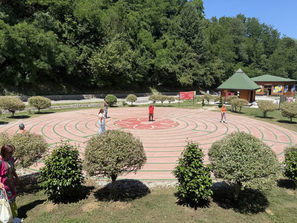 At least it means we have time to explore the park. And it really is an impressive creation: a mélange of spiritual and pseudo-spiritual practices from around the world. In one section stand Vedic houses from India. Right next to them is the Rose Labyrinth of Love, with concentric walking circles. There are also “energy spirals,” where, depending on the direction you walk, you supposedly either give energy to the Earth or draw it from her.