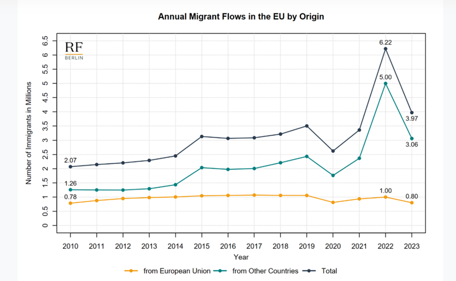 Overall, although the long-term trend has been upward, with a notable spike in 2021 after the COVID outbreak, the numbers have stabilized in recent years. In fact, countries like Germany, which see a high flow of immigrants, often actively recruit them to fill essential positions in the German economy, as highlighted by Deutsche Welle.