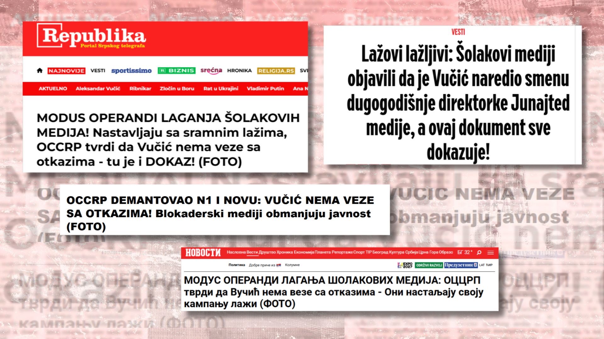 “OCCRP refuted N1 and Nova: Vučić has nothing to do with the dismissals! The blockade media are misleading the public,” was later published by Alo.