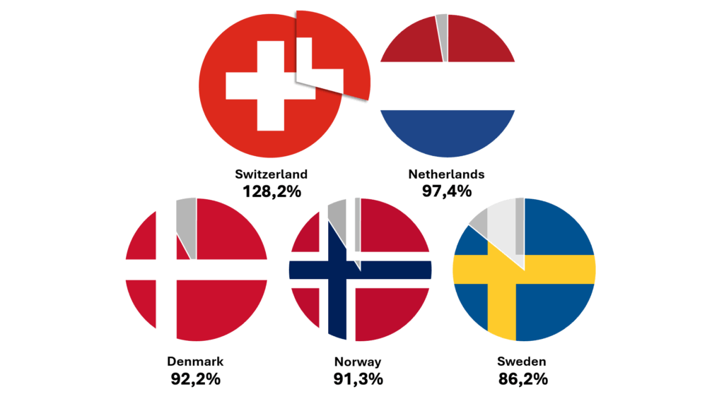 By contrast, the countries with the highest levels of household debt in Europe are: