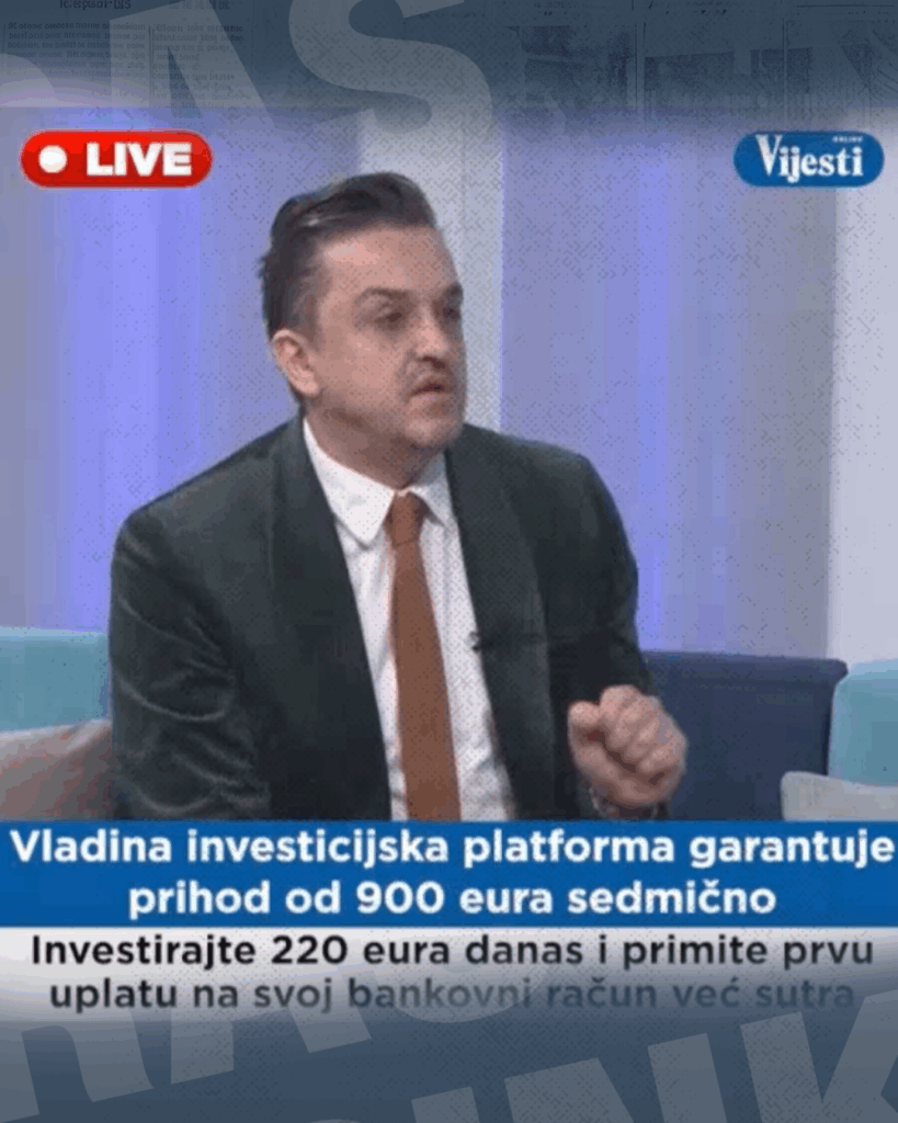 Did you then click on that content and see a video in which the Minister of Finance, Novica Vukovic, allegedly invites viewers to invest €220 to earn the aforementioned €900 per week?