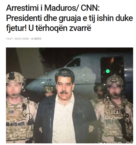 After the widely reported U.S. capture of Venezuelan President Nicolás Maduro on January 3, 2026, an image claiming to depict moments from the incident began circulating online, including on Albanian-speaking media outlets.